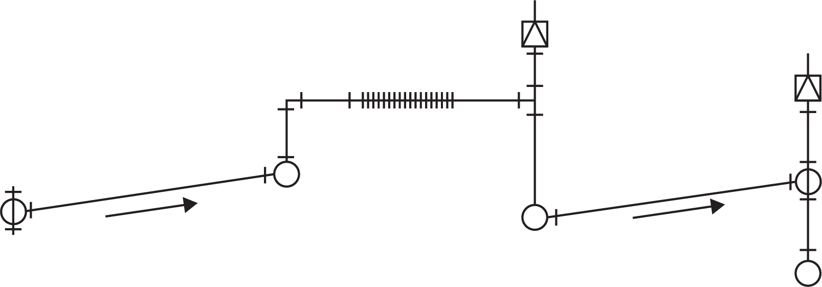 Figure 4 shows how a swing joint reacts to thermal expansion. The stub is rigidly fixed to the supply main. As the water in the supply main becomes warmer, the supply main expands so the stub moves in the direction of flow. The offset to the stationary component allows enough motion to prevent significant stress. The movement of swing joints responds to other forces as well.